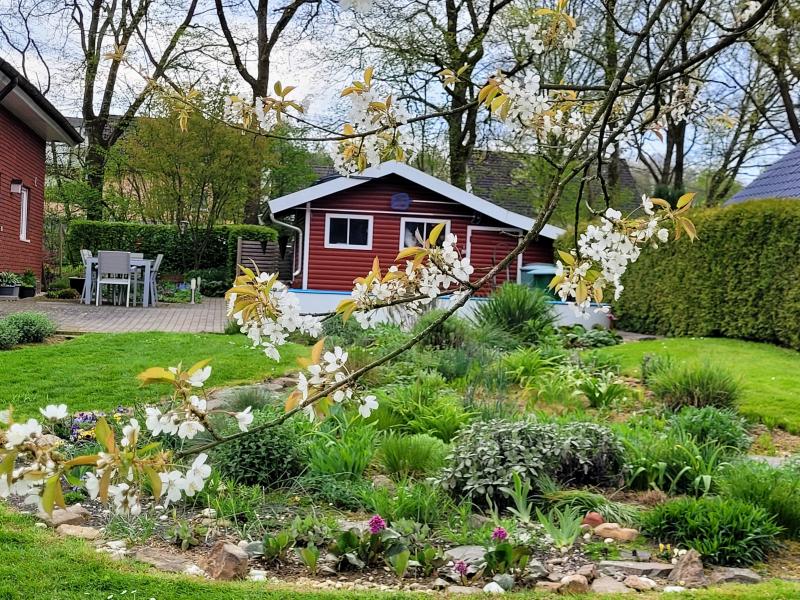 Es blühen die Bäume... dahinter das Steppenbeet hauptsächlich noch in vollem Grüngrau. ;)