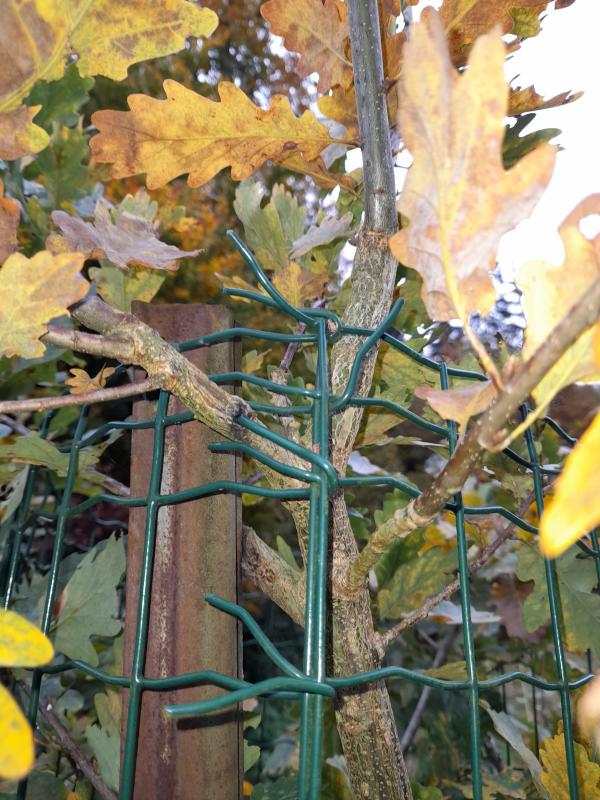 Gut. Dann denke man sich das eben: Eiche ist nun ordentlich beschnitten und kann neu geschützt nun endlich ohne Umklammerung wachsen