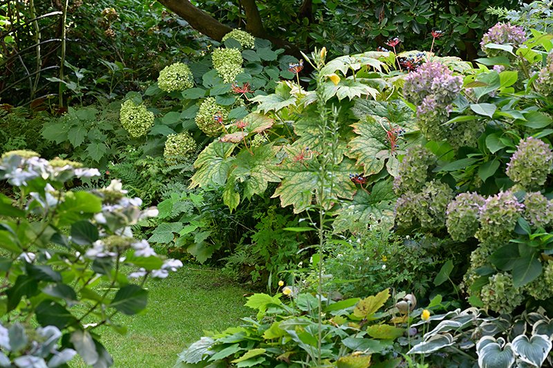 Gartenlady, was für ein beeindruckendes Spätsommerbild. So viel schmückendes Blattwerk, dazu die ausgeblichenen Blüten der Hortensien. Da möchte man sich einfach hinsetzen und die letzten warmen Wochen genießen.