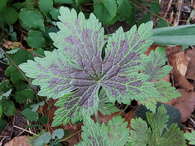 Geranium maculatum 'Espresso' hat zwar interessantes Laub, zeigt sich hier aber ziemlich blühfaul.