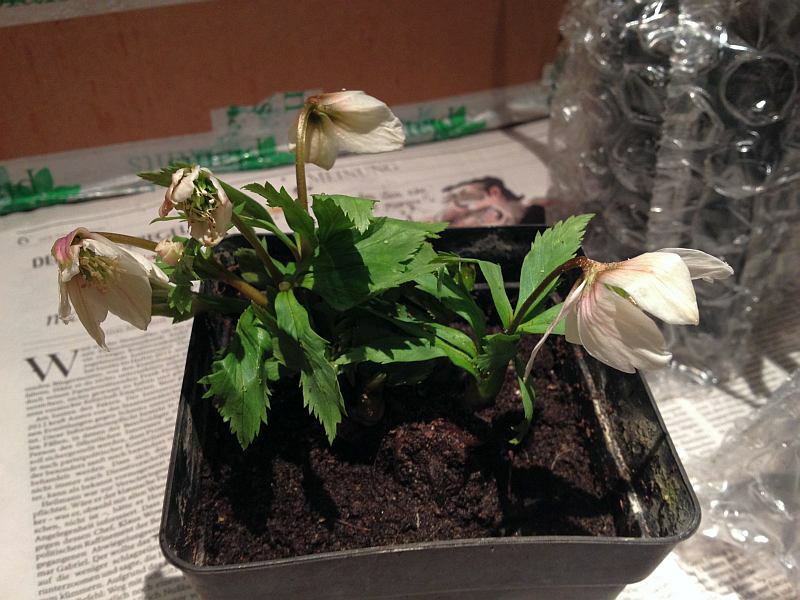 Foto bittebeichtete ich eigentlich schon, das auf unserem balkon seit heute ein leicht gequetschter zierlicher weiß-rosageflammt blühender thibetanischer helleborusse harrt?!