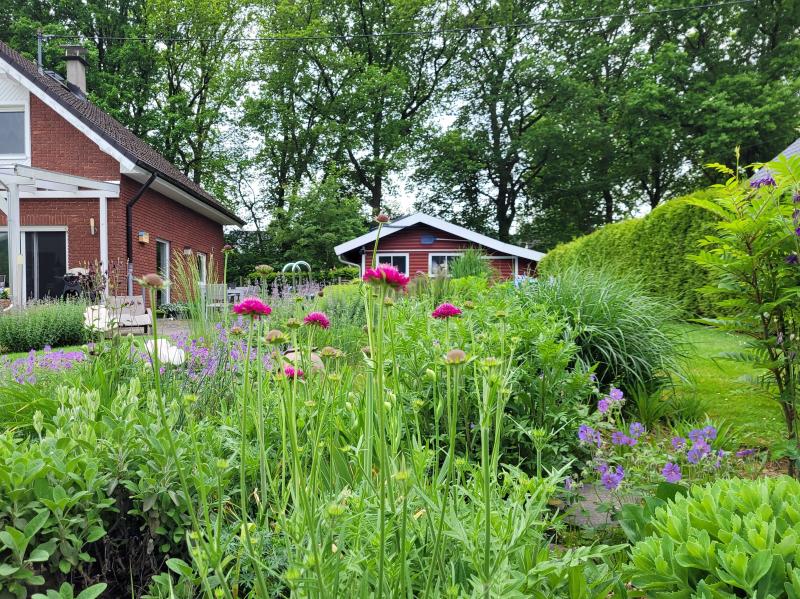 Allium blüht hier noch nicht, ist aber links im Präriebeet vorhanden. Schöne Idee... ;D