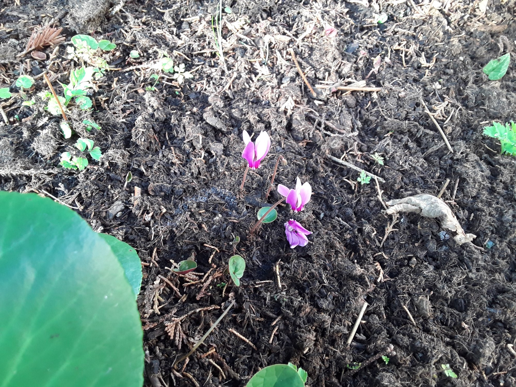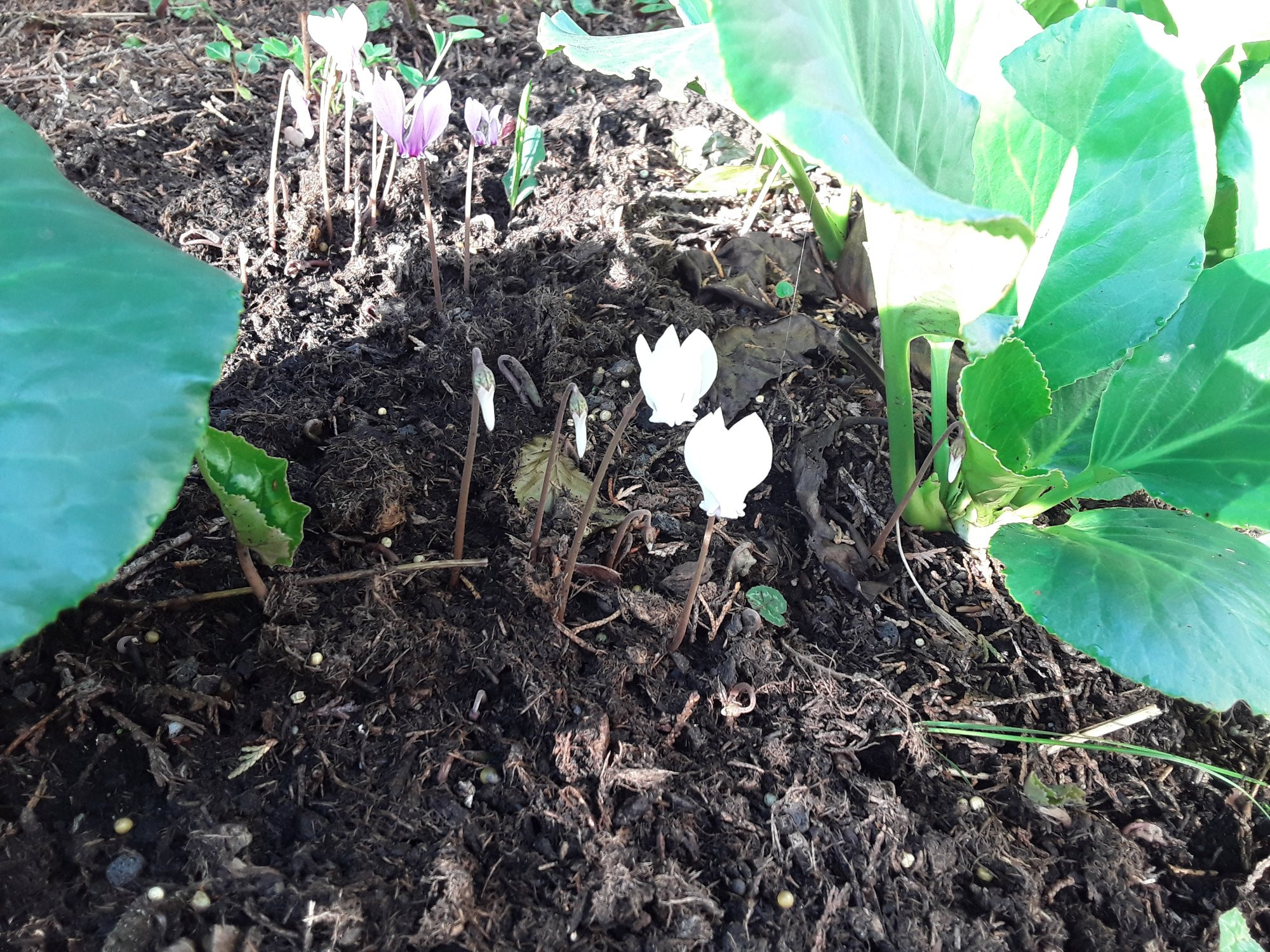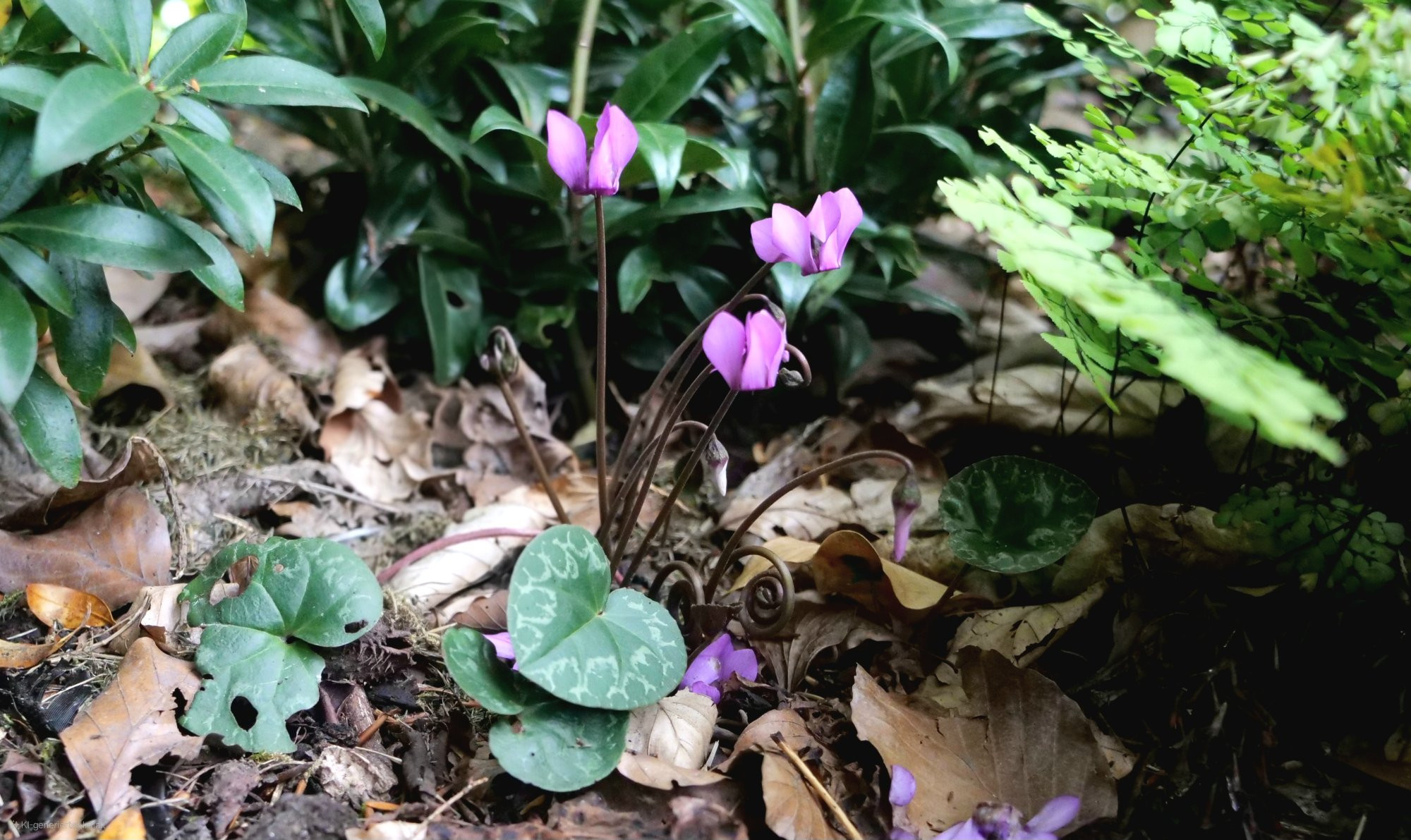 Weiter sind hingegen die Lord'schen Cyclamen purpurascens, die ich in einer etwas verwegenen Idee unter mein Hakonechloa pflanzte, wo das Laub vor allem in Winter die ansonsten leere Stelle bereichert. Die Blüten sind dadurch etwas versteckt, wodurch es nicht so einfach war, ein Foto zu machen: