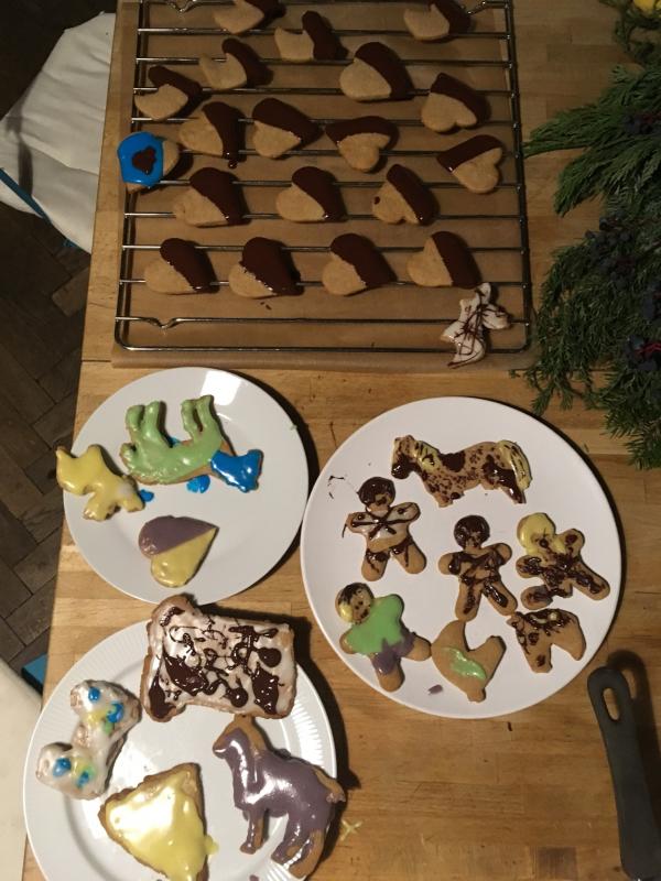 Zum einstimmen gabs hier einfache Mürbteigkekse. Einfach, weil Teig gekauft. Bio und Dinkelvollkorn und Honig statt Zucker - was aber im Endeffekt egal war, weil künstliche Lebensmittelfarbe draufkam. :'( Backen mit Kindern ist ja so schön. :-X