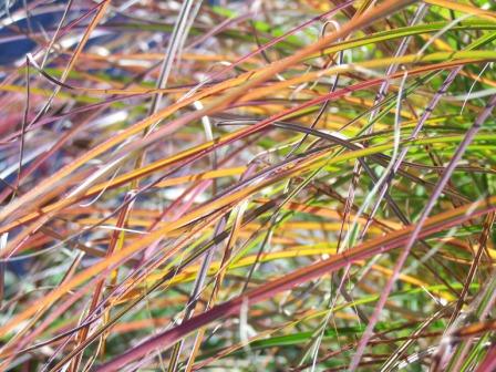 Die Miscanthusse färben hier auch ausnehmend schön. Sogar dieser (von dem ich mir partout nicht merken kann, ob es nun `Kleine Silberspinne´ oder `Kleine Fontäne´ ist), der die Jahre zuvor nie so auffällig war, ist heuer richtig bunt: