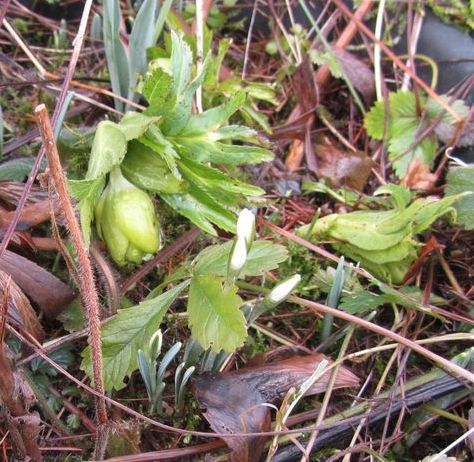 Bei mir ist die stärkste, ganz dunkle Hellebora jetzt richtig voll aufgeblüht - unglaublich, so früh. Der Blütenstiel ist sehr kurz, ca. 5 cm, würde ich meinen, aber an den "Verweigungen" könnten sicher noch mehr Blüten kommen. Ist es eigentlich normal, dass die so niedrig bleiben? Oder wachsen die in der Höhe immer weiter? Als ich die gekauft habe, waren es richtige hohe Stauden. Bei den anderen ist tw. noch nichts Neues zu sehen - Tiefschlaf, nur ein Sämling hat noch ne dicke Knospe und die Hellebora Niger sind so, wie immer im Februar, ca. 4cm hoch, dicke weiße Knospen.