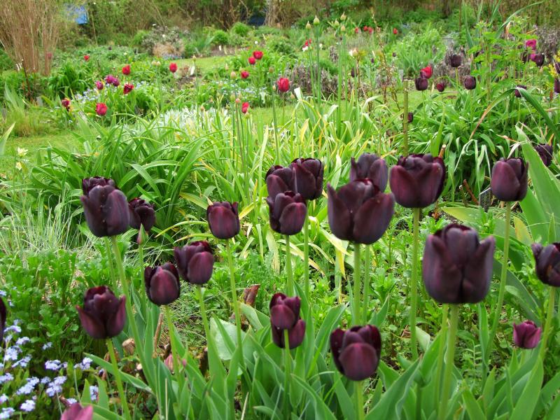 In den Beeten rechts blühen vor allem die Vergissmeinnicht und Polsterphlox