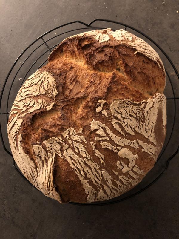 oile hat geschrieben: ↑26. Dez 2020, 12:26 Gerade aus dem Ofen gezogen: ein Brot nach Lutz Geißler (etwas abgewandelt auf unsere Bedürfnisse).