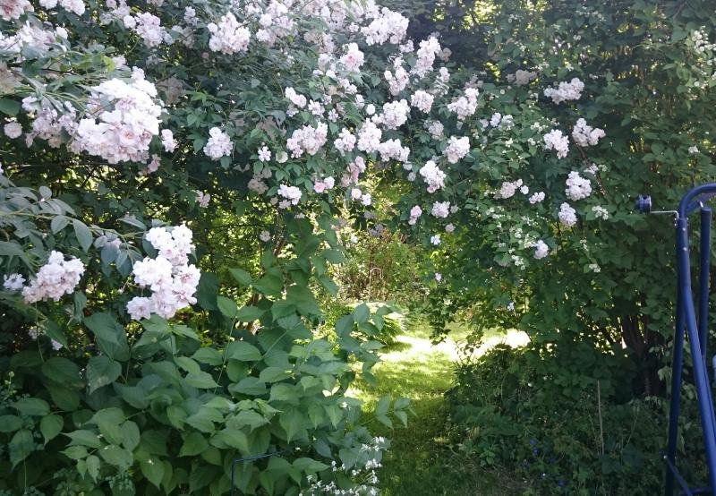 Hier haben ein Eonymus, PHM und ein Pfeifenstrauch einen Durchgang mit Bogen gechaffen.