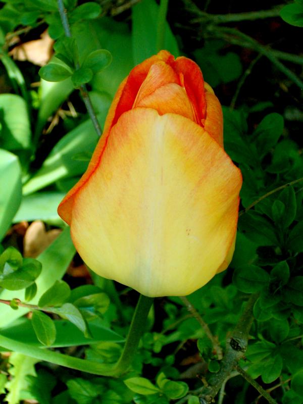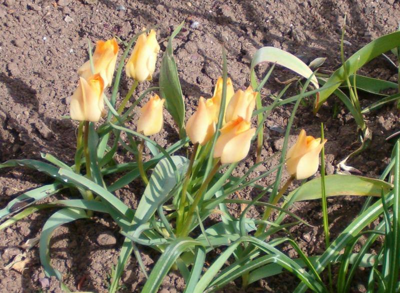 Meine Daydream-Tulpen mag ich sehr, anfangs gelb, dann immer mehr orange. Leider hat sie diesmal der Sturm umgeworfen.