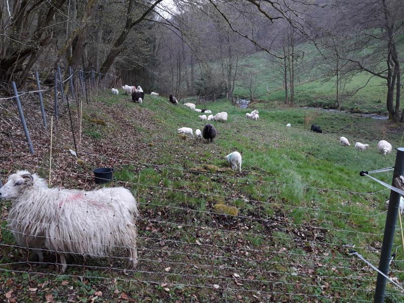 Nachmittags kippte ich fast um. Auf einer neuen Fläche steht noch nicht so exorbitant Futter drauf und weil wir ein echt nasses Jahr haben, ist der Bach so breit, dass das Übersiedeln der Lämmer (Skudden) eine grandiose Herausforderung wird. Was nicht gut ist, weil ich mindestens nachmarkieren, teilweise aber auch schon zum Umzug tackern will - aber nachmittags arbeite :P Also eigentlich nichts Neues: Arbeiten am Limit. Das Wasser ist schon heiß: Gleich füttere ich erst einmal die Flaschenlämmer. ::)