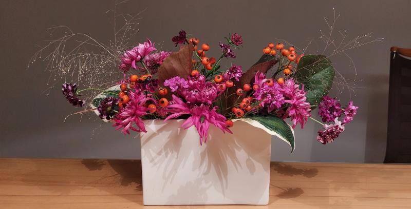Die meiste Zeit des Jahres kaufe ich keine Schnittblumen, außer dass im Winterhalbjahr nach den Frösten das Gartenangebot gegen Null geht. Aber dann nur sehr selten (z.B. zu Familienfeiern an Weihnachten), sehr wenig und aus möglichst umweltschonender Produktion (also keine Weihnachtssterne etc...), möglichst angereichert mit Zweigen aus dem Garten. Üppige Sträuße im Winter... - scheiden damit eher aus.