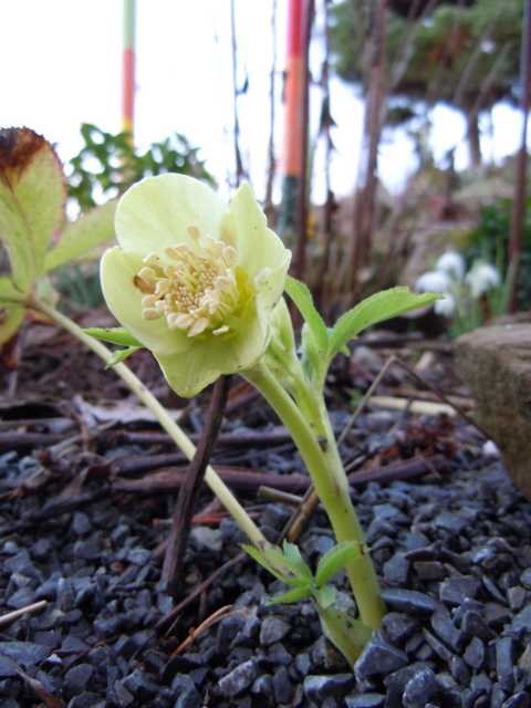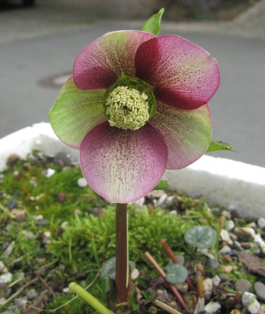 Heute habe ich mal ein Update der Helleboren aus dem Verbreitungsgebiet Mittelitalien. Die grünen Formen die aus Samen gezogen aus früheren Jahren habe ich auch zum ersten Mal blühend bei mir. Zwei sind Ableger von Pflanzen die mein Freund Charly hat. Bei ihm blühen sie schon seit einigen Jahren.Die Farbe dieser besonderen Exemplare ist schon sehr verdächtig. Blütengröße wie bei den grünen Schwestern 5cm. Die zweite hat sogar Sprenkel. Bis jetzt habe ich sie im hellen Atelier überwintert. Dort waren die Blätter im Spätherbst schwarz, ganz ohne Frost.Dieses Jahr war bei den grünen Schwestern und bei diesen zwei Exemplaren noch etwas Grün in jeweils einem Blatt bei einigen Pflanzen. Dabei hatten sie mehr Frost als in den Jahren zuvor.