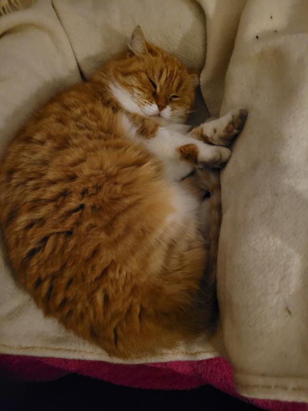Einstweilen Flauschi am derzeitigen Lieblingsplatz mit Unterbodenheizung (=Mw kissen) in Kraulerwartung (nein, es täuscht, sie ist immer noch im Unter- bis Normalgewicht ;D) ...