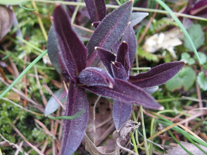 Dunkles Laub - und leicht behaart, wenn ich das richtig erkenne! Bin sehr gespannt, wie dieser Sämling blühen wird!