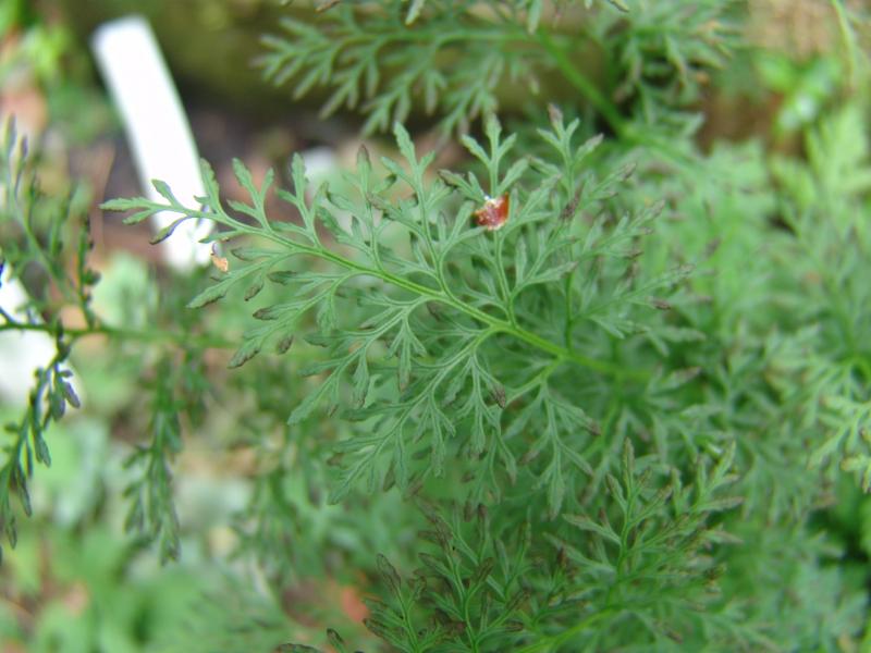 Hier bekam ich erstmal einen Mordsschreck und hatte befürchtet, dass sich was anderes in den als Cryptogramma crispa erworbenen Farn eingenistet hat. Nach Blutdrucksenkung und nochmaligem Blick sind es wohl doch nur neue Wedel, etwas frischer halt - wie das eben so ist.