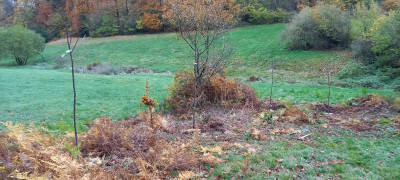 In diesem Bild gestatte man mir den Hinweis: die im Gestrüpp gefundene kleine Buche bleibt noch, bis die Zwetschen tatsächlich angewachsen sind. Der Faulbaum bleibt
