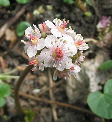 Dieses Pflänzchen rührt sich mit Blüten, obwohl noch keine Blätter zu sehen sind. Ich weiß nur, dass es sich um ein amerikanisches Gewächs handelt (Saxifraga?). Kann mir jemand weiterhelfen?