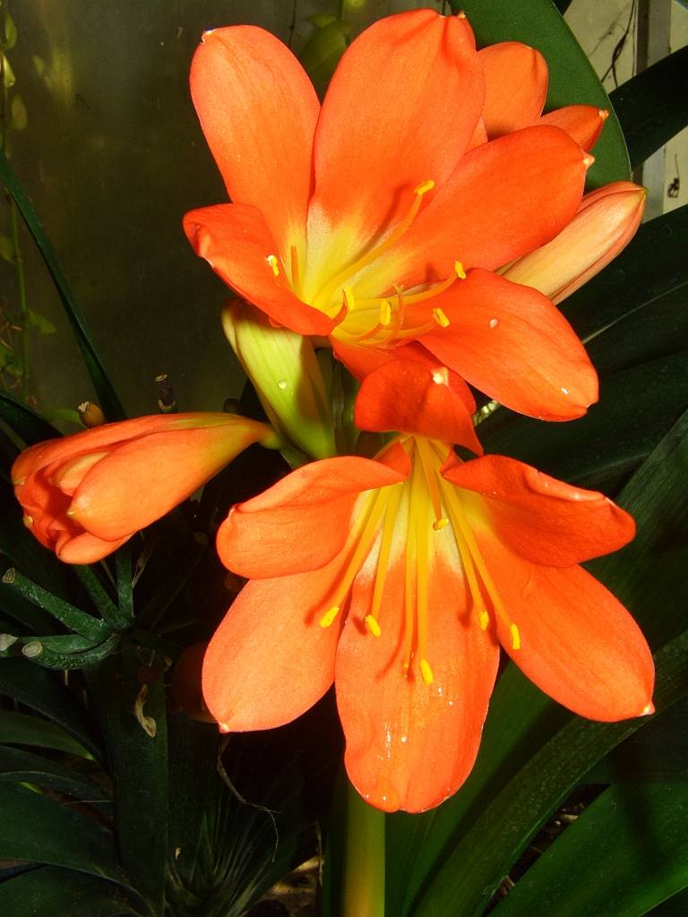 Die verschiedenen Clivia miniata-Klone kommen im temperierten Haus unter den Tischen bestens zurecht und erfreuen immer wieder mit ihren Blüten!