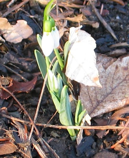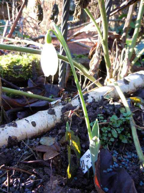Im Vordergrund links und unmittelbar davor sieht man Galanthus nivalis. Dies für alle, die immer sagen, sie sähen keine Unterschiede. Links daneben und weiter hinten sind andere Kultursorten wie 'Godfrey Owen' und 'Lapwing'