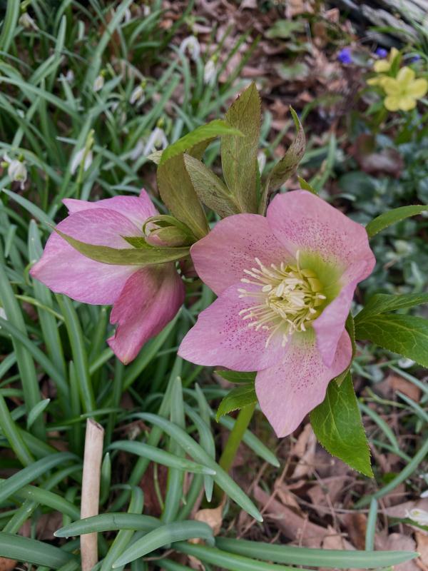 und die Helleborus x hybridus 'Harvington Rebekah'
