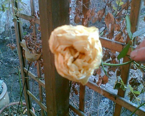 weißt du, wir männer haben es ja nicht so mit der technik und brauchen da einfach eine frau, die uns hilft ;Dnun ja, sie ist ja nun schon eine ziemlich reife schönheit, diese rose, aber ich bin froh, dass ein feund mit handy sich überreden liess sie zu fotografieren :Ddiese etwas vergilbte schönheit müsste eigentlich noch einen leichten rötlichen hauch an den rändern haben um- in verbindung mit der informatione es handele sich um eine modere kletterrose- erkennen zu lassen, dass es eine goldfassade ist