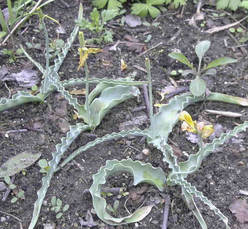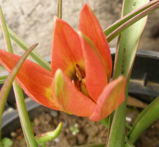 Knorbs seine T. aucheriana ist mit die beste Steingartentulpe. Der verträgliche Farbton, die kompakte Größe und mit der unproblematischen Dauerhaftigkeit kanns fast keine andere aufnehmen.Hier nur noch ein Blattfoto von T. iliensis. Ein Bekannter meinte vor zwei Wochen, das dieser Tulpe offensichtlich ein kalter Schauer übern Rücken läuft bei all den seltsamen Pflanzen ringsum.