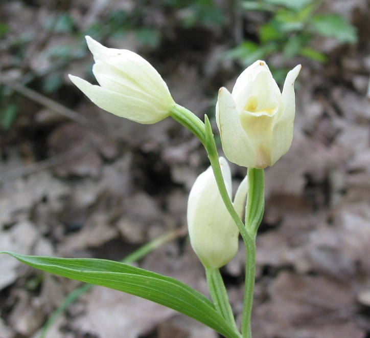 Weißes Waldvögelein Cephalanthera damasoniumDas Weiße Waldvögelein, dessen hübsche Blüten an die Form von Vogelschnäbeln erinnern, ist eine typische Art lichter Kalkbuchenwälder, findet sich aber auch in Waldsäumen, Niederwäldern, Steinbrüchen oder in wärmeliebenden Strauchgehölzen. Es ist auf basenhaltigen Boden angewiesen.