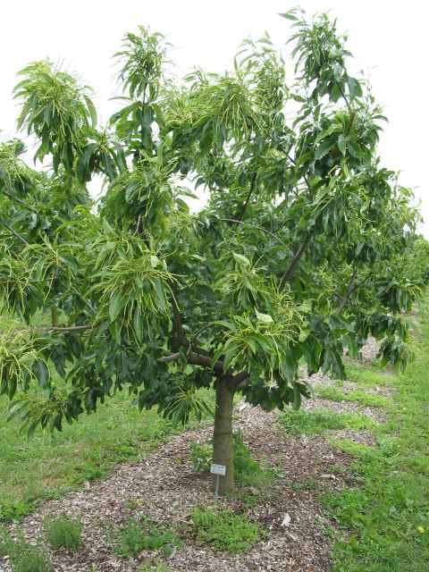 Die Infos zu Castanea sativa aus dem Thread 'Bundessortenamt in Marquardt' sollten besser hier in den Kastanien-Tread. (Wunsch vom Moderator, und es ist tatsächlich besser, wenn die Diskussionen nach Arten sortiert bleiben.)Am Tag der offenen Tür in Marquardt waren neben ca. 80 weiteren 'Wildobst'-Arten auch einige Eßkastanienbäume zu sehen, nämlich Marron de Lyon, Belle Epine, Ecker und ein Sämling.Ich war überrascht, dort blühende Kastanienbäume vorzufinden, die nur ca. 2,50 m hoch waren. Ich denke, daß sie gut geschnitten werden, habe aber nicht speziell nachgefragt.Die Bäume stehen dort jedenfalls ca. 10 Jahre, dürften also etwa 12 Jahre alt sein.