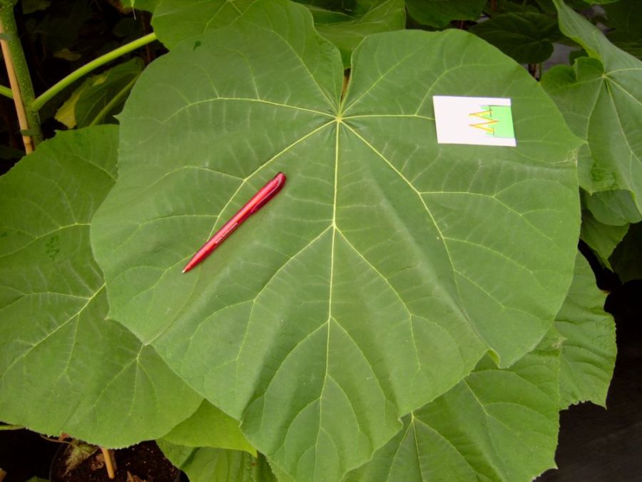 Die Blaetter sind nur an jungen Trieben so riesig, deswegen wird Paulownia manchmal als Blatschmuckpflanze gezogen und eben regelmaessig ganz heruntergeschnitten.
