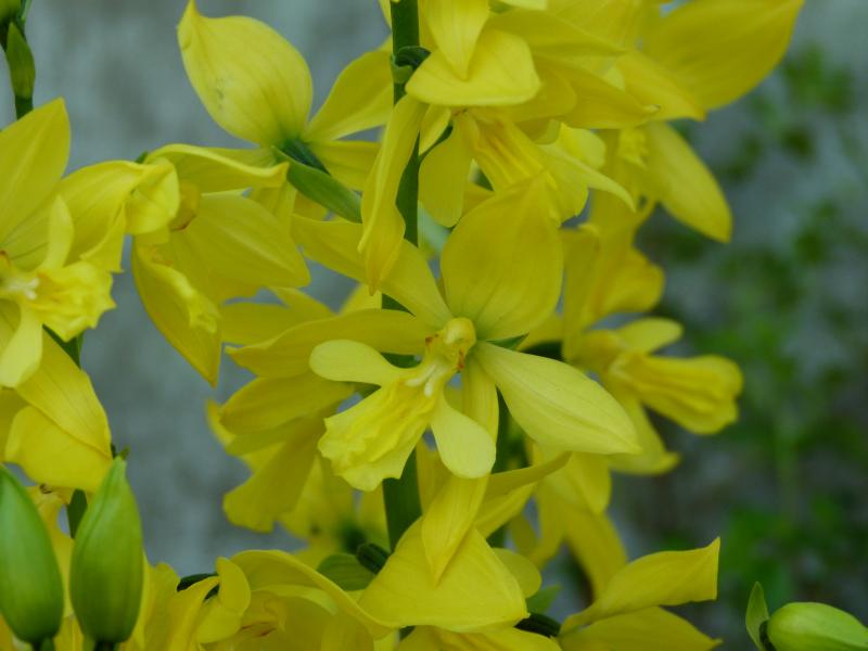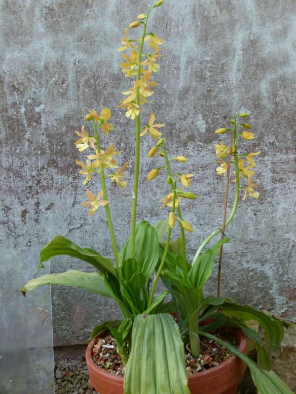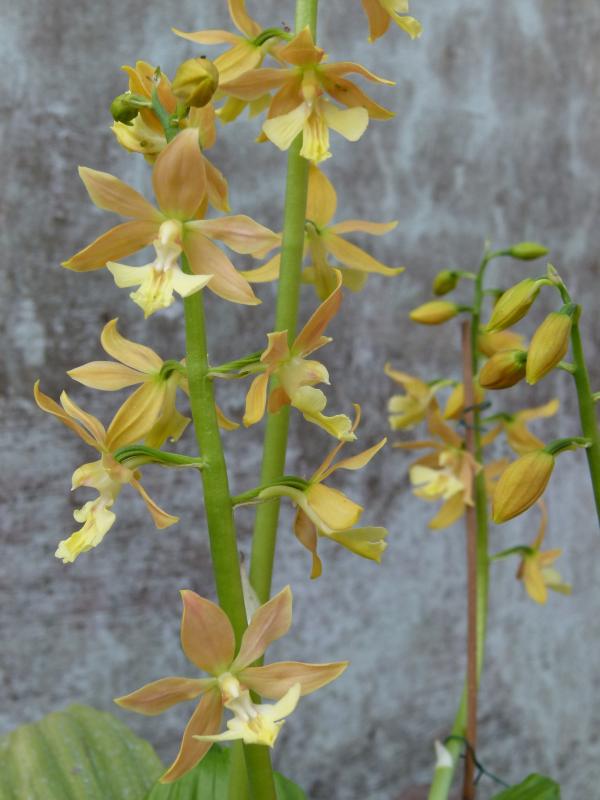 Gut gedüngt haben sich meine beiden Calanthe schön entwickelt.An den meisten Trieben stehen sogar 2 Blütenstände. Zunächst die Calanthe striata (syn. sieboldii):