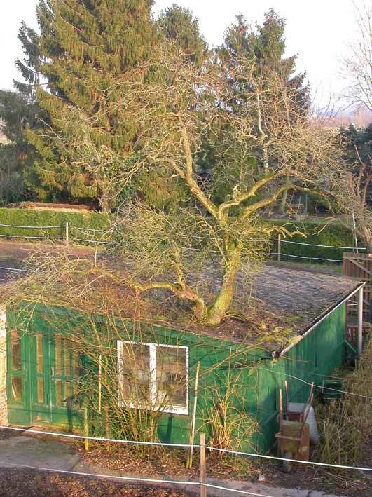Was man auch auf dem zweiten Bild nicht so richtig erkennt, hinten links steht noch ein Baum in der Laube...