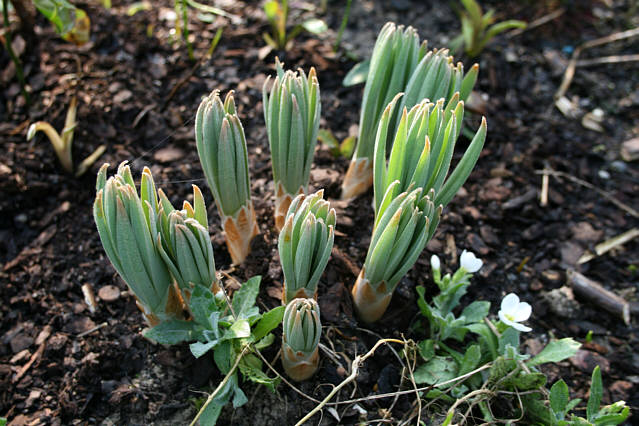 Hallo Cerinthe, bei uns (südl. Stadtrand von Berlin) treiben alle Eremus aus! Die älteren Pflanzen (ich glaube Robustus) sind schon 10 cm hoch. Wir haben noch andere, kleine Sorten, da ist noch nicht so viel zu sehen. Der Züchter hatte uns empfohlen, die Rhizome von Okt. bis ca. Anfang Dezember) abzudecken. Wir geben erst mal Rindenhumus mit getrocknetem Kuhmist drauf und dann eine Stellage, selbstgebaut. Ein Rahmen auf 4 Beinen, ca. 20 cm hoch, mit durchsichtigem Wellplastik. Es sind wie gesagt Steppenpflanzen und nasse Winter mögen sie garnicht. Ich bin ein Eremurus-Fan!
