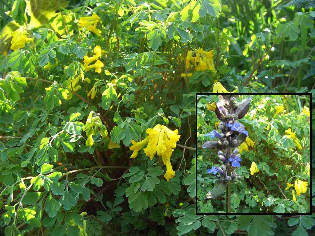 ... sowie auch Pseudofumaria lutea, der Gelbe Lerchensporn, gern zusammen mit ...
