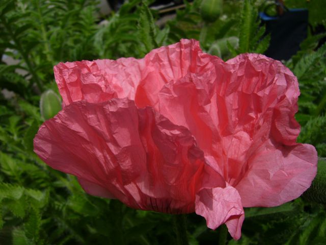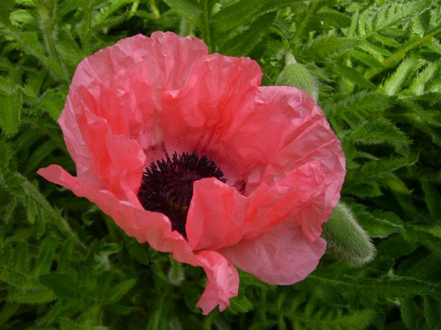... heute zartrosa mitten im Grün die erste Mohnblüte