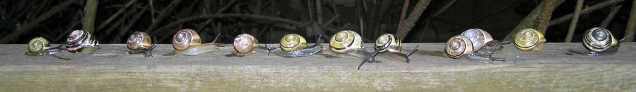 Boah, die marschieren aber erstaunlich in Reih und Glied. Oder hast du da ein bißchen nachgeholfen ;DIch halte übrigens von der Aussage, dass Häuschenschnecken keine Schäden anrichten, gar nichts. Ständig hängen sie an der Unterseite der Taglilienblätter und raspeln sie dünn.bild: ohne worteFressen Gehäuseschnecken denn auch am Gemüse rum?Ich dachte, die halten sich an andere Sachen, wie z.B. Gelege der Nacktschnecken...![]()