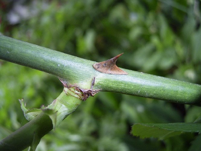 Jetzt vorest mal das letzte Bild.Ich habe schon ein wenig Erfahrung im Bewurzeln von Strauchhölzern, auch Rosenhölzern. Wie ist Euro Einschätzung? Soll ich einfach mal einen Bewurzelungsversuch mittels Steckhölzern von dieser Rose starten? Abschneiden kann man bei diesem kleinen Überbleibsel einer Rose natürlich nicht viel. vorerst letztes Bild: Stachel jüngerer Trieb