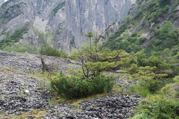 Und auf einmal war es alpin. Latschen wachsen hier nur mehr sehr niedrig.