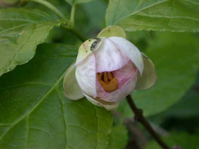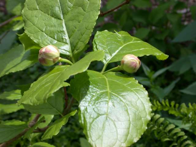 Ich habe Sinocalycanthus chinensis nun im dritten Jahr. Zwei Winter mit Temperaturen bis -20 Grad hat sie überstanden. Im ersten Jahr hatte ich sie sonnig stehen: das ist ihr nicht gut bekommen, Blätter und Blüten wurden von der Sonne verbrannt. Im Halbschatten bekommt es ihr nun viel besser. Sehr blühfreudig ist sie nicht: etwa ein Dutzend Blüten gab es letztes Jahr. Aber schön! :DKnospe am 5.6.05