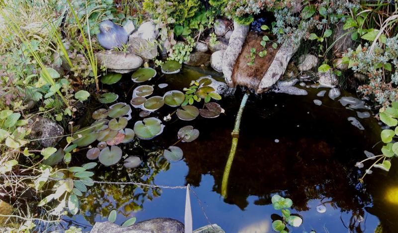 Wichtig für ein kleines Teichlein: keine volle Sonne, dann veralgt das Wasser schnell.