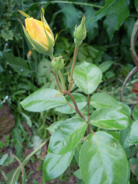 Danke tzara für Deine Fotos.Aber es spricht eine ganze Menge gegen Goldstern.-Meine Kletterrose wächst nicht buschig.-Die Knospen sind nicht zu kugelig/rund.-Meine Rose hat so gut wie keine Stacheln. Ein paar einzelne wachsen an den dicken Hauptästen. Goldstern soll ja stark bestückt sein. - Meine Rose wird beim aufblühen/verblühen fast weiß. Das gibts bei Goldstern auch nicht.Ich habe mir jetzt etliche Fotos und Beschreibungen angesehen und komme zu Erkenntnis, es muß Golden Showers sein.Würde mich aber freuen, wenn sich noch andere Besitzer dieser zwei Rosen (vielleicht mit Fotos) melden würden.Schönen Sonntag - Heike