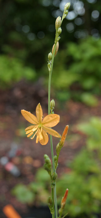hier eine vertreter aus der südl. usa, der aber in eine neue gattung gestellt wurde. früher hieß die pflanze anthericum torreyi, der aktuelle name ist echeandia flavescens. kommt in nadelwäldern der südwestl. usa im grasunterwuchs vor. dürfte somit vergleichbare standortansprüche haben wie unser einheimisches anthericum ramosum. auch im ganzen habitus mit den grasartigen blättern ähnelt es sehr a. ramosum, mit ausnahme der orange-gelben blüten. die pflanzen sind aus samen gezogen (dank an phalaina