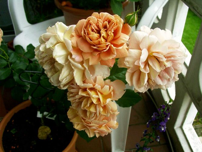 Eure Ideen Rosen in Töpfen zu halten, haben mir Appetit gemacht. Von meiner Mutter erbe ich in Kürze einen uralten italienischen Terrakottatopf, der groß genug ist, auch eine starkwüchsige Rose aufzunehmen. Da ich zudem ein beheizbares Gewächshaus habe, darf diese Rose auch nicht winterhart sein.Meine Wünsche an die Rose:- remontierend- duftend- kein Orange!
