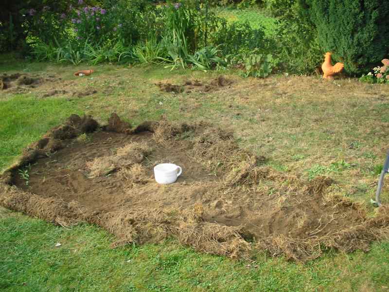 ? Mal sehen....ich heb die Grasnarbe einfach ab, ist eh tot (bis auf Löwenzahn und Spitzwegerich