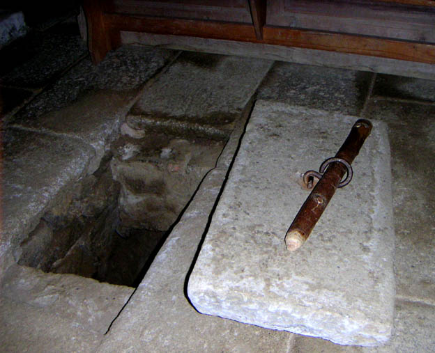 Das sind Gänge, die im Boden, meist aber direkt ins Gestein gemeißelt wurden. Ihre Funktion ist ungeklärt, einige Forscher gehen von Fluchtgängen, andere von Gruften, Opferstätten oder Geheimverstecken aus. Jedenfalls sind die meisten gesperrt und wir wollten eigentlich nur die Kirche besuchen und uns erdstallmässig informieren.Den Kirchenschlüssel musste man holen und dann kam ein Junge mit, der ein wenig was über die Kirche erzählte. Wir standen vor dem Altar und hörten ihm zu, als meine Schwester über den Erdstall losplapperte und mein Vater sagte, da könnte man nicht rein. Da schaute der Junge auf und sagte: Wieso? Ihr steht auf dem Einstiegsstein! Wir hoben ihn also hoch...