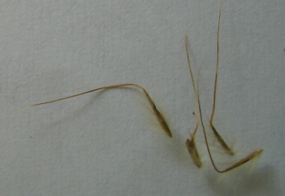 Von dem anderen, kleineren Gras nahm ich an, es sei eine Stipa-Art.Es ist sommerblühend und inzwischen ausgereift.Hier der Samen (zugegeben, mit kleinerer Granne als Stipa barbata sie hat).oile *sehrverwirrt*