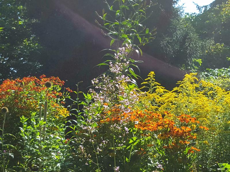 Variationen mit Solidago, hier mit Chrysanthemum ( " Edelgard"??), und mit Helenium.