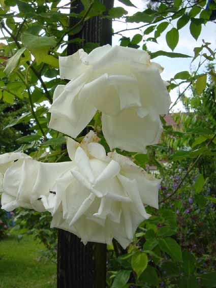 Bei der hab ich gemischte Gefühle: Sie war dieses Jahr wieder besonders prächtig und üppig, hat lange geblüht und betörend geduftet, aber dafür ist sie auch monsertig gewachsen und bedrängt ihre Nachbarn ziemlich...