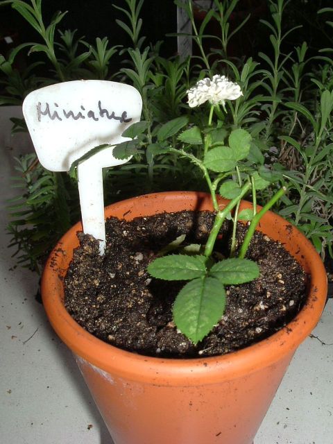 n Sangerhausen habe ich Miniature erstanden, eine kleine Polyantha mit klitzekleinen duftenden Blüten. Ich habe Ableger gemacht und einer der Ableger hat ganz schnell eine Blüte gebildet, so daß ich eine Minatur- Miniature hatte. So was winziges habe ich noch nie gesehen, ein Röschen wie für die Puppenstube.Dorothea