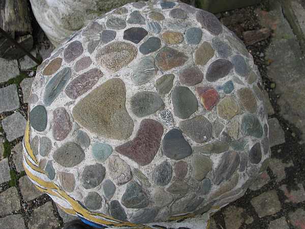 Zum Aufkleben ist Silikon schon ok. Verfugen muss man aber mit einem speziellen Fugenmörtel und am Wichtigsten ist der Übergang an den Rändern des Mosaiks auf den jeweiligen Untergrund (ein Wandmosaik würde ich einputzen, ein Bodenmosaik vor dem Einbau auf eine Platte kleben). Ich habe einige Mosaike im Aussenbereich und könnte Dir vielleicht ein paar Tipps geben, mir ist aber nicht ganz klar, ob es sich bei dem von Dir geplanten um ein Wand- oder um ein Bodenmosaik handelt.Folgende Materialien sind frostsicher: Glas, hochgebrannte Keramik, viele Naturstein-Arten (Granit, Basalt, Quarzit,..), Feinsteinzeug (das was vermutlich mit "frostsichere Fliese" gemeint ist), Klinker bzw. die besser geeigneten weil dünneren Klinkerspaltplatten, harte Kiesel (Sandstein-Kiesel weiß ich nicht) und sicher noch einige mehr.Hier ein Mosaik-Pflasterstein, den ich mal von einer Kollegin bekommen habe, die Mosaikspezialistin ist:Da werden aber die Steinchen mit Silikon angebappt und anschliessend verfugt.Ich habe da Zweifel...